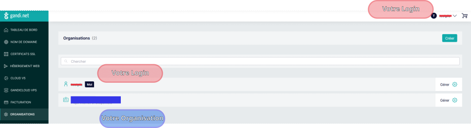 Vous serez alors redirigé vers votre tableau de bord Gandi :